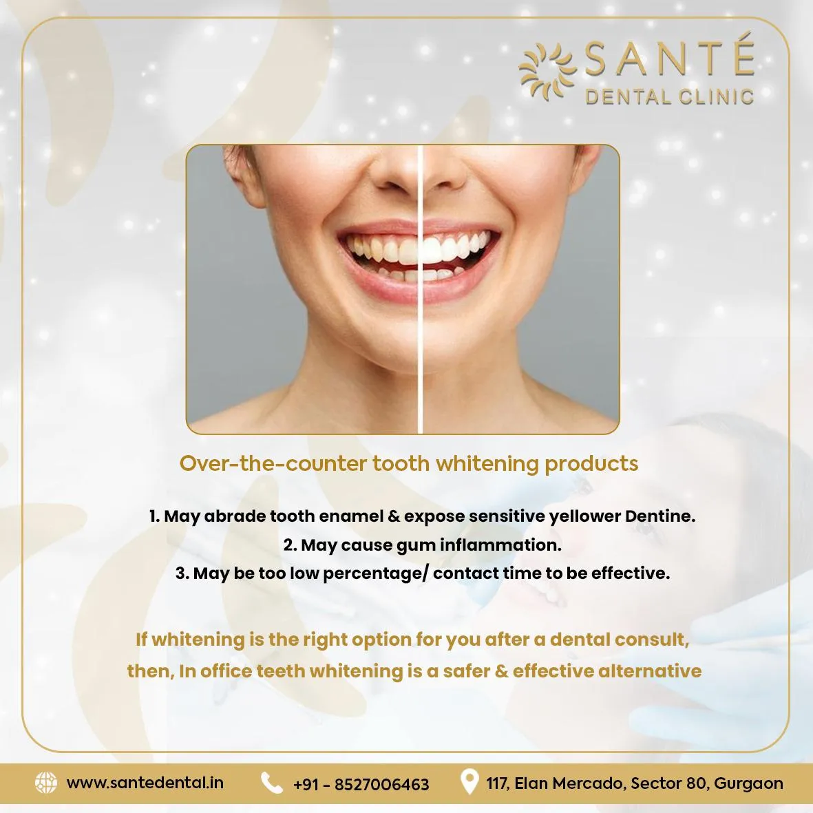 For more information and additional queries contact us on 8527006463 or write to us at Dr Ritu Sharma, emailsantedental@gmail.com or visit us on www.santedental.in
